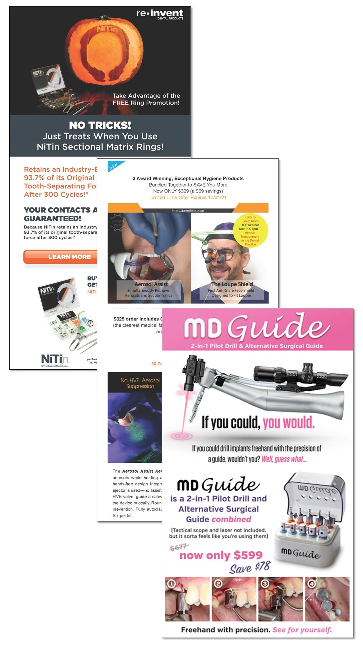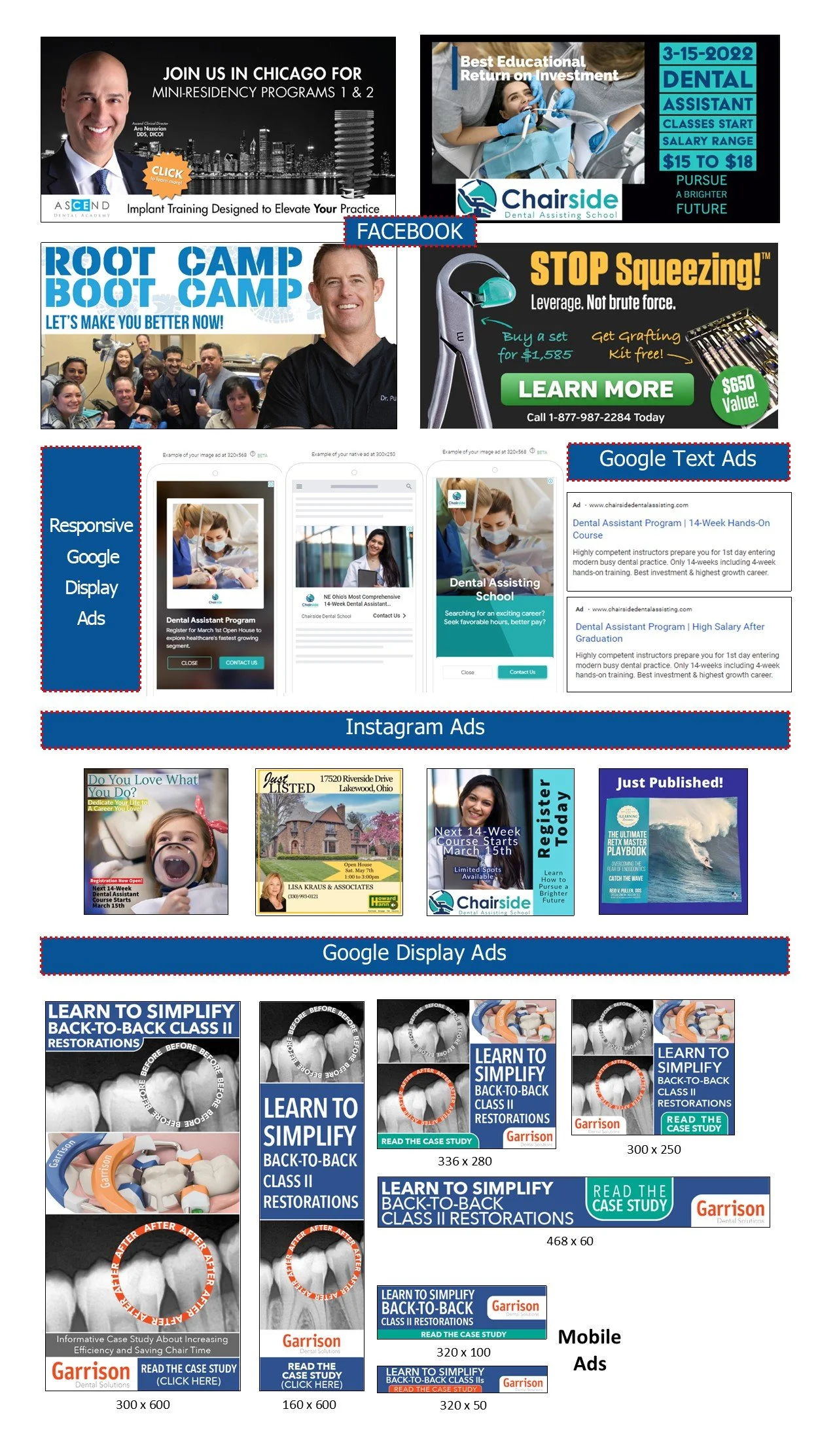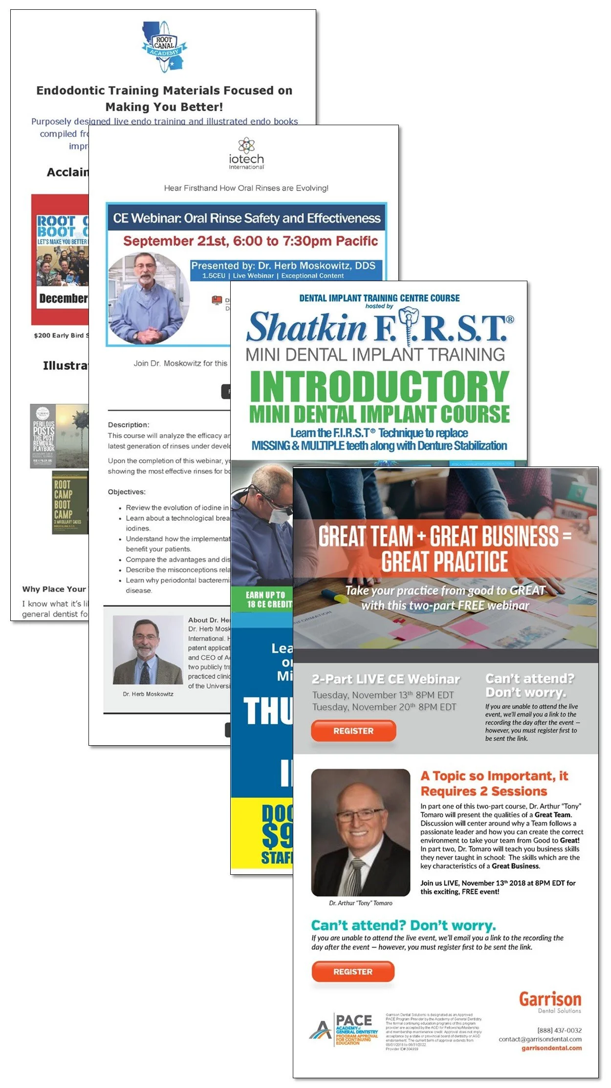 Client Projects Landing Page and Website Design Dental Promotions (delivered via email) CE Event Announcements Pay Per Click Ads Customers